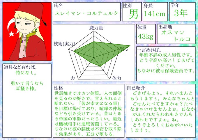 オスマントルコ出身のスレイマンです。 癒し枠です。