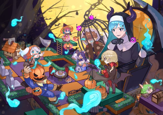 そろそろハロウィンも近いので 毎年同じ人達を描いてます🎃 #歴代ハロウィン絵を上げよう
