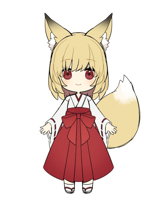 デフォルメ狐ちゃんは衣装と髪型の差分をつける予定。早く完成させたいな