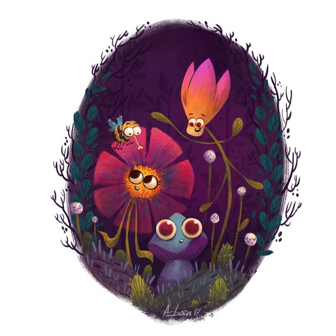 So the first image in the mushroom series is done! #mushrooms #digitalart #kidlitart #fungi #illustration #cute #characterdesign