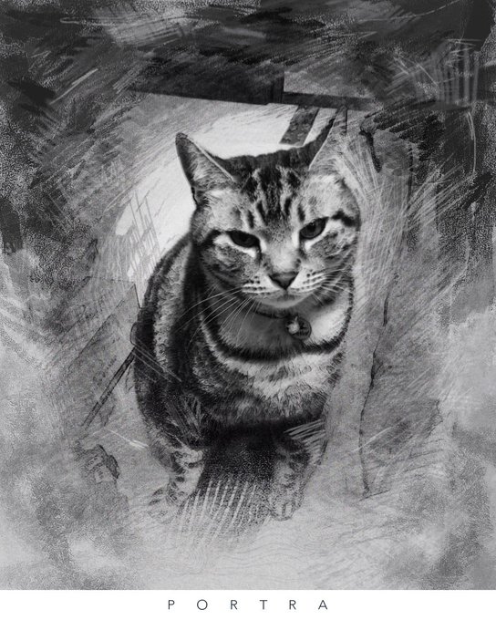 おもしろいですけどやっぱり水彩をさらに加工するのにはむいてないですねー デジタル絵のほうが親和性あるかも! 最後のは実家の猫です🐈