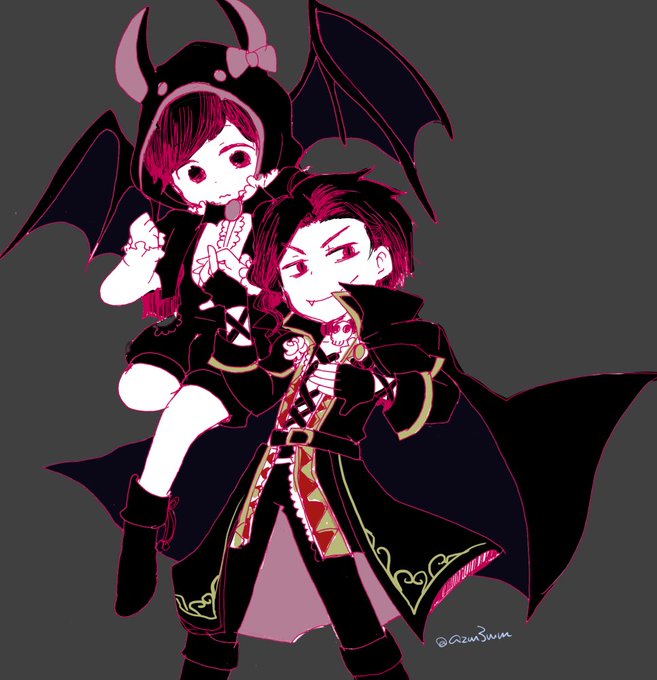 「うちのご主人が一番可愛い」ってやりあってる吸血鬼カラ松と使い魔ねこあつし どうでもいい顔のこうもりちゃんとトドりん