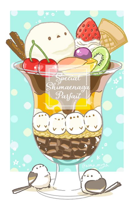 #自分が何度も投稿してしまう画像 シマエナガアイスと白玉シマエナガのもりもりパフェ💬💕