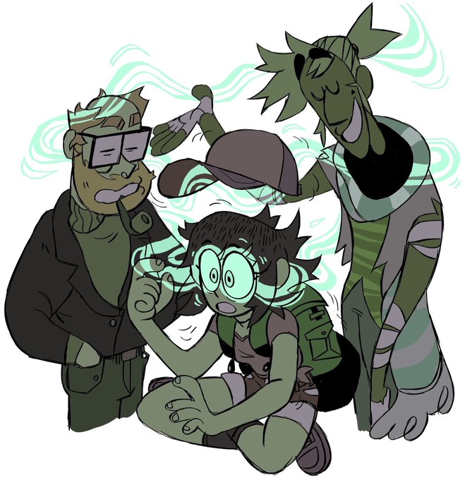 here's all of them colored+shaded in that really chunky cel shaded look BV