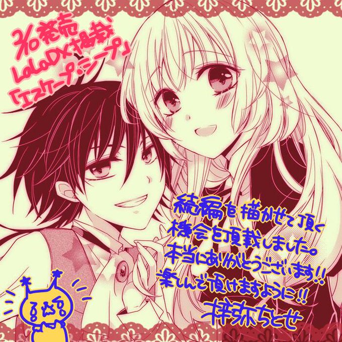 取り急ぎ予告をば!!2月10日発売のLaLaDXに「エスケープ・シープ」掲載して頂けます。沢山の応援を頂戴して叶った続編です。本当に有難うございます!!ブログにも予告あげてきました。 http://t.co/FI2vAiM39H