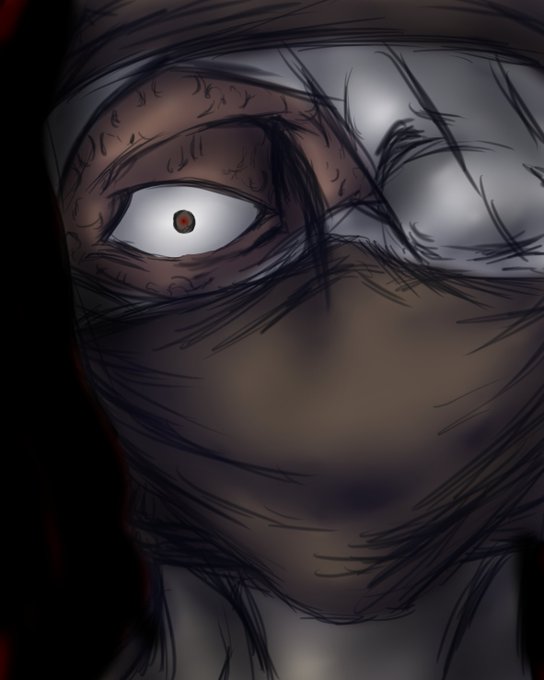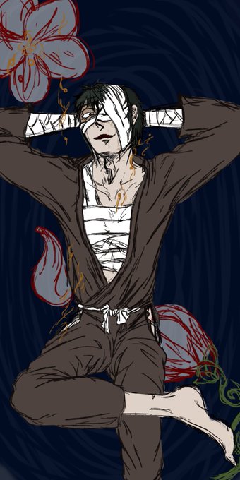 #リプきたキャラを趣味全開で描く タグにて、 花輪さん:@juzzuuuuusara2 より、頂いた"押都小頭" 闇と成り果てての黒鷲也