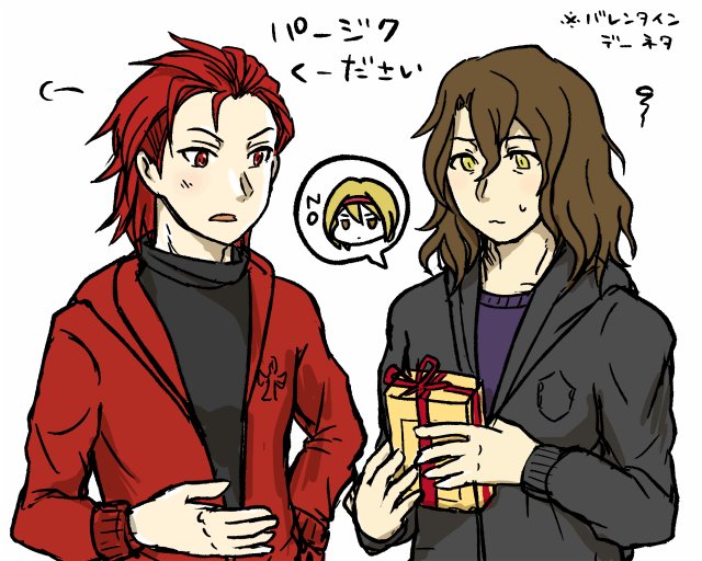 初描きで申し訳ない落書きパージク バレンタインネタ関連な感じで…団長ちゃんにプレゼント受け取ってもらえなくてさてどうするか…となってるところに俺は甘いものが苦手だがどうしても言うなら食べてやらんこともないとかしれっともらおうとするパーくん