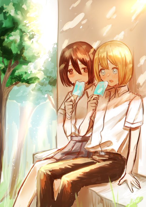 #EMA #エレミカアル 子供のミカサを大人エレン&アルミンが愛でる絵です…幼馴染に幸あれ…