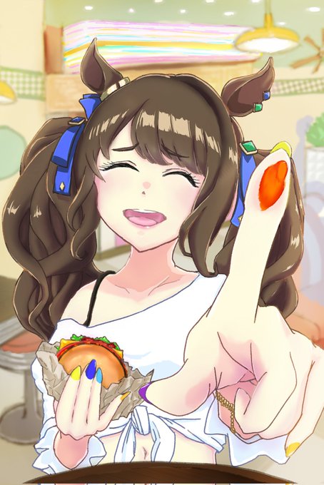 「めっちゃソースついてんじゃん、ウケるw」#トーセンジョーダン #ウマ娘
