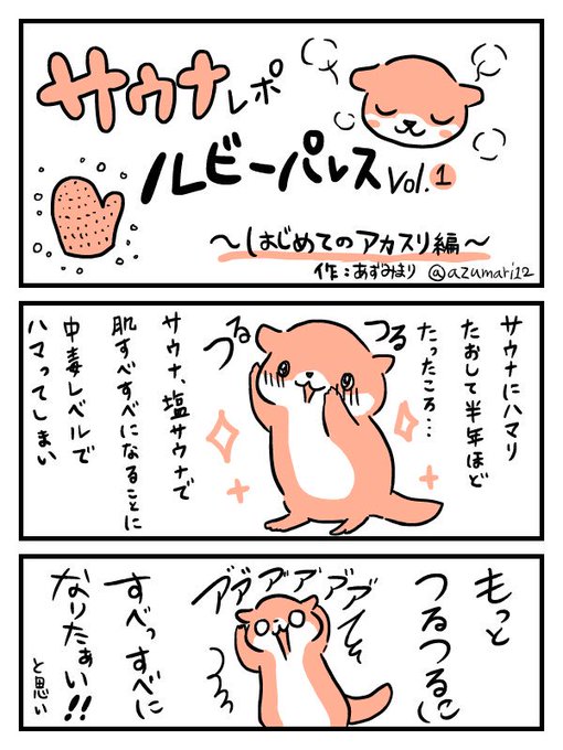 サウナ好きのカワウソ レポ漫画!① 新宿ルビーパレス はじめてのアカスリ編 #あずみまりの漫画 #サウナ好きのカワウソ #ルビーパレス #アカスリ #美容 #サウナイキタイ #東京銭湯