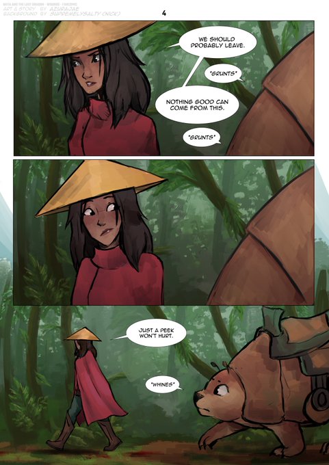 Well, this took a while, but here's the #rayaari #RayaAndTheLastDragon fancomic called 'Wounds' I've been working on! All the pages should be in the replies :D Credit to @SupremelySalt for doin' BGs