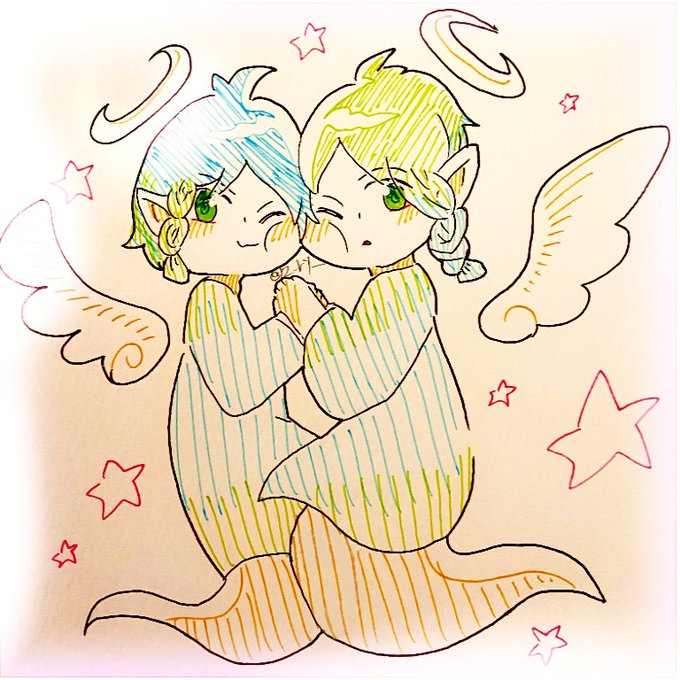 双子お化け天使ちゃん👼👻 #ツキノイヌイラスト