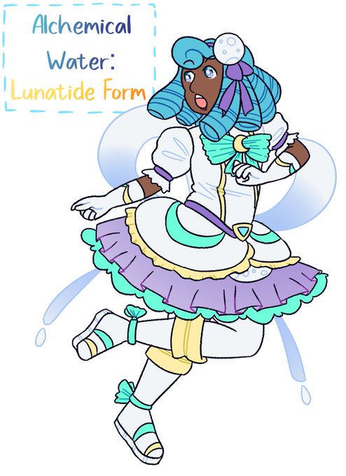 the #SleeplessDomain discord hosted an art game where we redesigned an sd character using the words gold, ribbon, and moon! 💛🎀🌙