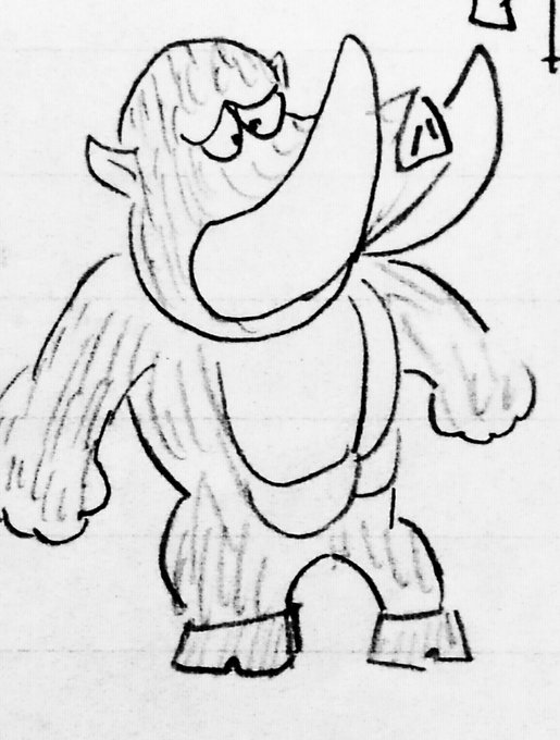 描き直してみた ⑰ 猪突くん 昔描いたものを、描き直してみました。 #オリジナルキャラ #キャラクターデザイン #モンスター #オリジナルモンスター #アナログ絵 #ボールペン絵