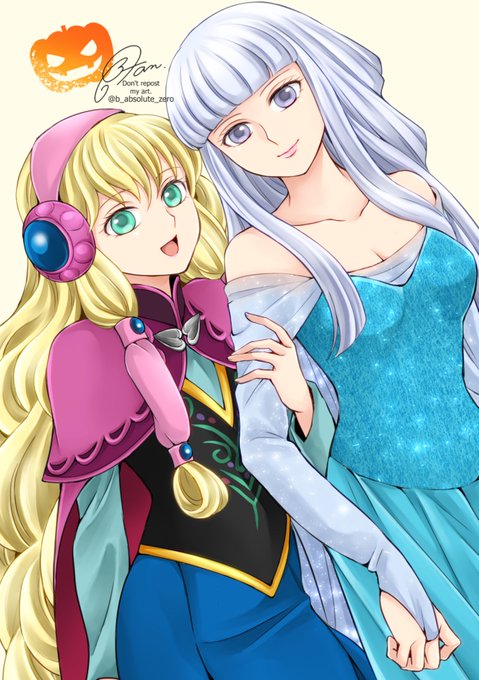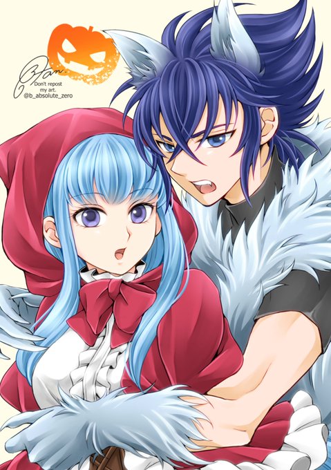ハロウィン(の仮装っぽい)絵を今日も再掲~! 某姉妹お衣装のヒルフレ姉妹と赤ずきん&オオカミのフロリフィちゃん