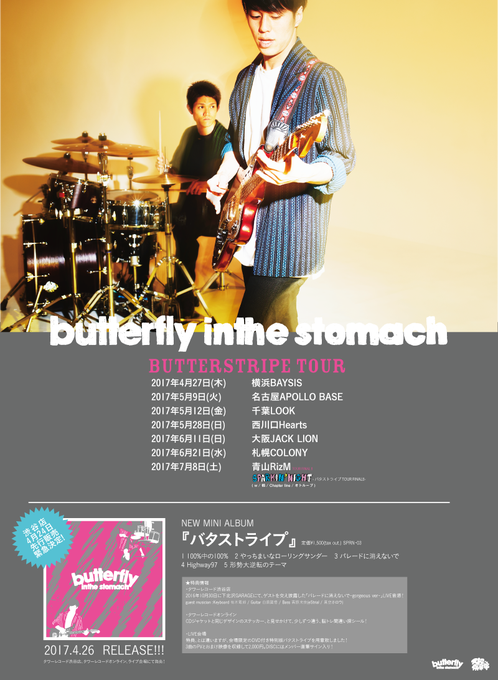 明日はCONNECT歌舞伎町MUSIC FESTIVAL 2017!我々はLOFT BARにて18:55〜出演!更にタワーレコード渋谷店ではNEW MINI ALBUM「バタストライプ」が先行販売店着日です!情報だと夕方には並ぶとか。よろしくどうぞ!#バタスト