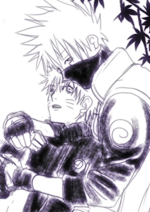 途中まで描きっぱなしで忘れてた暗部🍆とちみ🍥。 多分もうこれ以上は描かなそうだから供養上げ~ この二人のファーストエンカウントifを考えるだけで胸がキュンとする…!😭😭😭