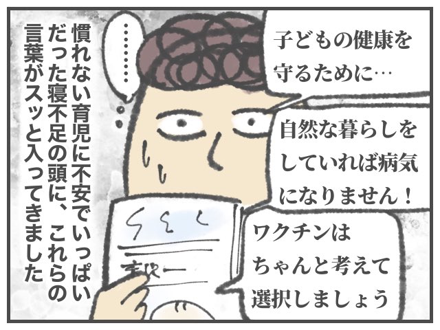正直思い出したくもないけど…産後うつ、慢性的な睡眠不足…いろいろな要素が重なって毎日不安な気持ちでいた頃、「ワクチンは危険だ」という主張は頭にスッと入ってきました。