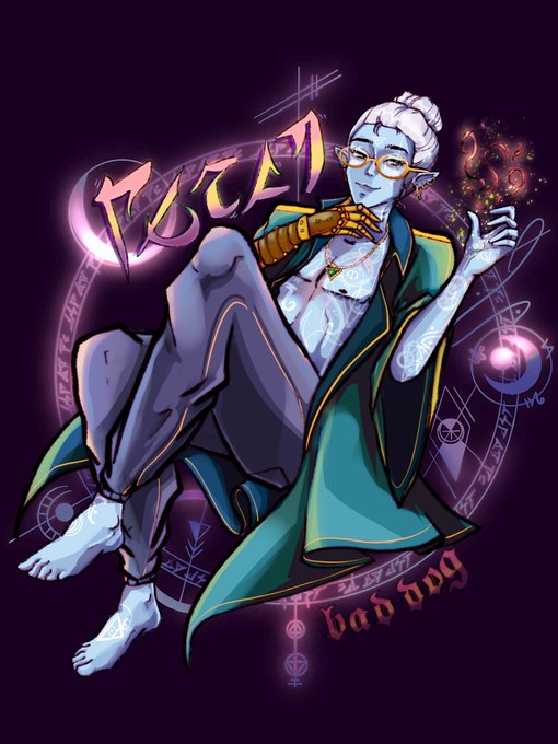 drew @the_Dinkus' d&d character, Myloh !! had so much fun with this and his arcane tattoos 🥺