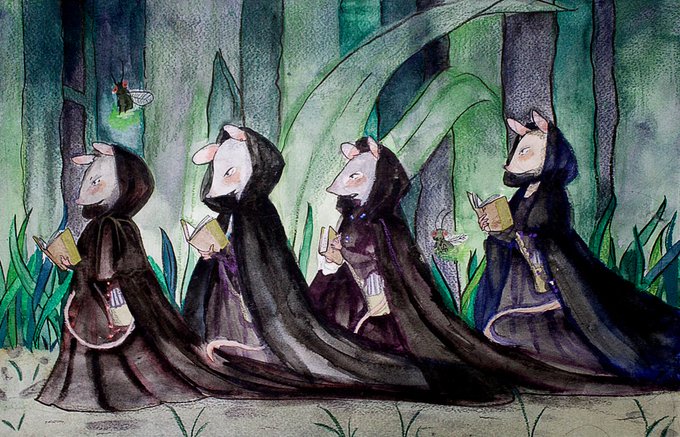 I love painting in watercolor and drawing animals in weird social interactions