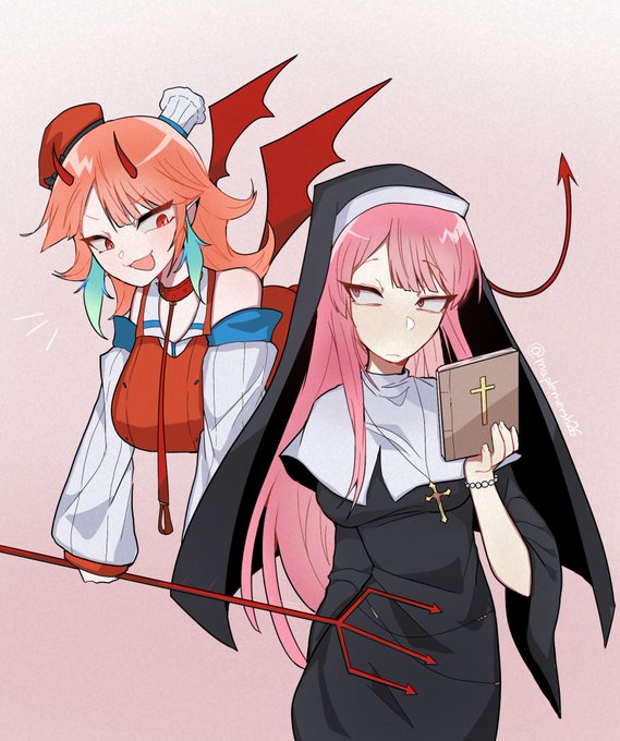 Demon Kiara and nun Calli😈❤️ #ArtsOfAshes #callillust #TAKAMORI #HololiveEN