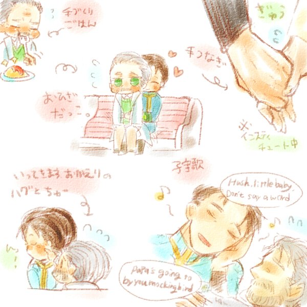 ぱっぱとファーザー。子離れできないぱっぱと、恥ずかしいけど拒否できない優しいファーザーね。甘やかさせてあげるファーザーの優しさ。だがだれよりもファザコン。まだ、ストーリー進めてないんで、自由に妄想するよ!進めたら自分爆死しそう。
