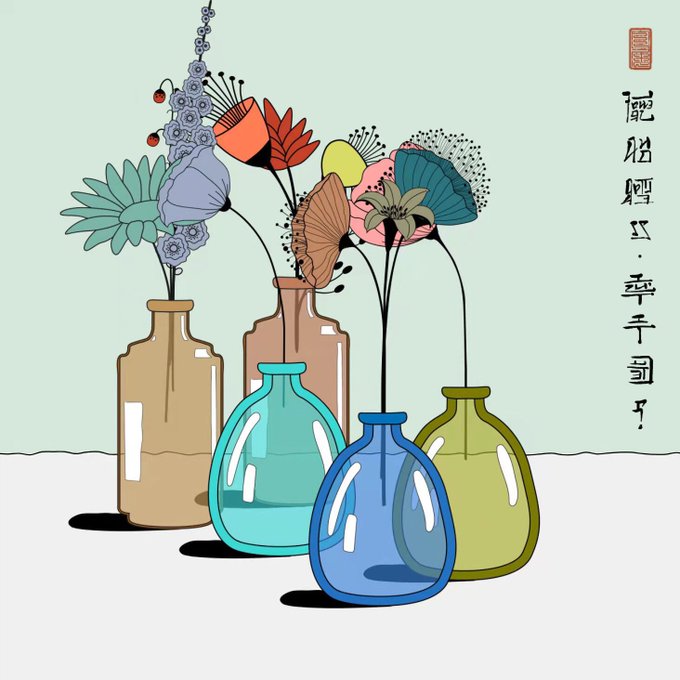 Eastern aesthetic contemplation of a Western concept of still life - “Flowers & Bottle” by @rozuva_.