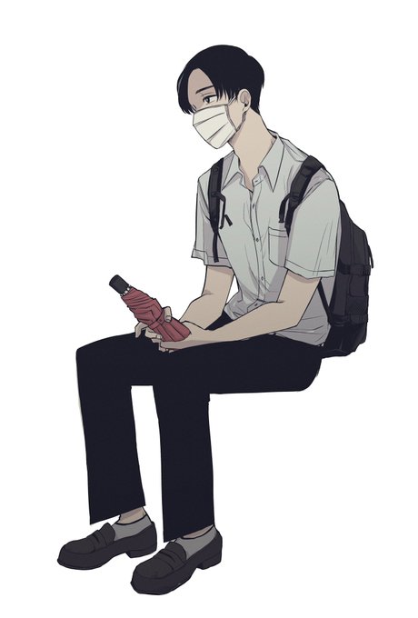 マスクで眼鏡が曇る男子高校生