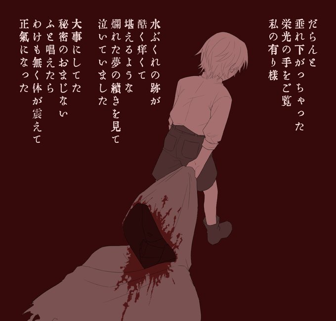 ダンテ没後にバージルがダンテの死蝋(ショタの姿記憶なし)を作って過ごしてたんだけど 、バージルが死んでしまって一人で死体引きずって街に行こうとするんだけど死蝋ちゃんなので温かい場所で自分が腐り始めてしまい共倒れするバジダン(地獄) 元ネタはい○わさんのあだ○しゃ #vd