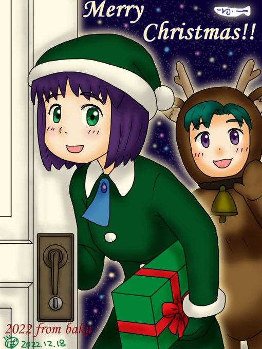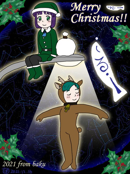 いつもの「トナカイ着ぐるみアルファとグリーンサンタココネ」はこんな感じです.