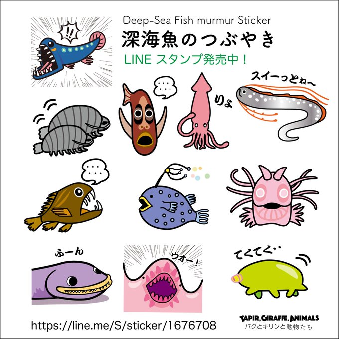 深海魚のスタンプ作りました!ダイオウイカやグソクムシ、クマムシなどメジャーな仲間からみたこともないような種類もいっぱい!深海魚好きにはたまらないものだらけです!https://t.co/ZRZ5tG40YX