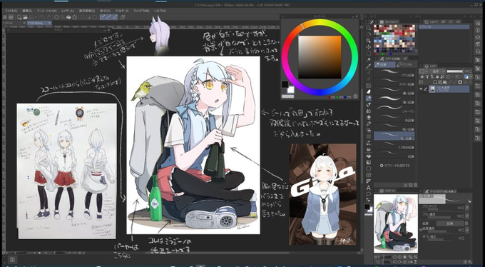 そういえばメモです 色のバランスは考えたつもりです ここでも緑の双眼鏡やスコールが服の赤と青を和らげる形になるかなーと思って置いてます まああと彩度は全体的に高くしてません