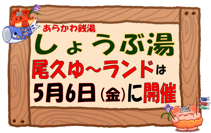 ♨`∇´♨) 5月5日に #荒川区 の #銭湯 では #しょうぶ湯 を開催したけれど #尾久ゆーランド は今日5月6日(金)に開催するんだばーん