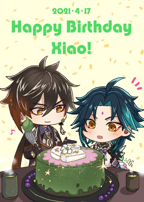 #魈生誕祭2021 魈くん~~~!!!!誕生日おめでとう!!!!!🥳✨ 鍾離先生に🎂をサプライズで作っていただいたというかんじの絵です🎉🎉🎉