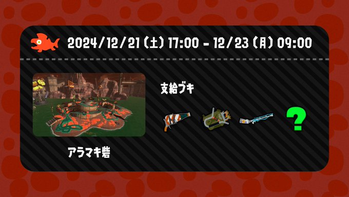 現刻より状況を開始する。…勇敢なる同志諸君。奴らはまだ懲りていないようだ。勝利の旗は我々こそが掲げるもの。クマサン印のブキがそろった今、ランダムで我らのブキは豊漁の女神となる!ワサビニコフの捌きの下、クマスロ弾で奴らの顎を食いちぎれ!! #ビッグラン #サーモンランNW