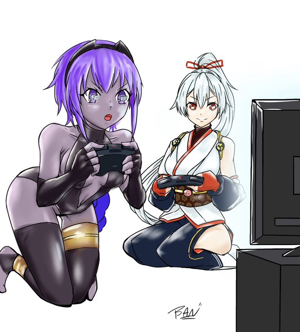 一緒にゲームする静謐ちゃんとインフェルノさんです。 ほんとiPad Proとクリスタ捗る。 #イラスト #FGO