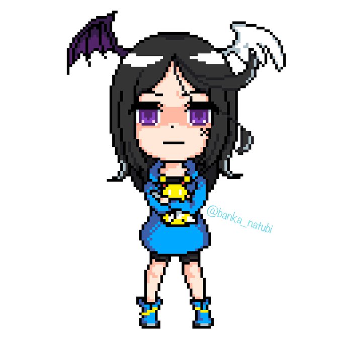 知り合いの方の創作っ子を お借りしてドット絵を描いてみました。12色縛りの中でやってますのでグラデが少ないのが悔しいですが、いい顔はできたと思います! #つーきんドット #ドット絵 #dotpict