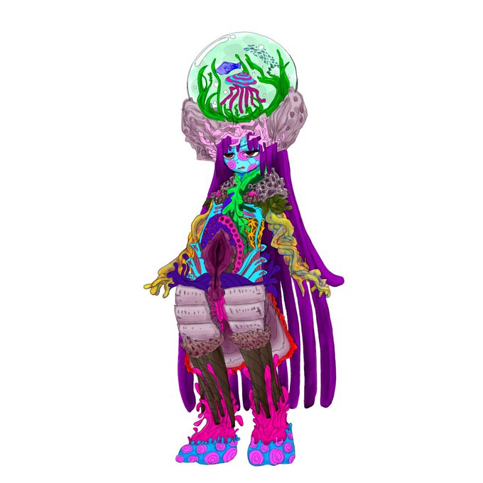 地上侵略ユニットを装着したクラゲの女の子のイラストです⭐︎