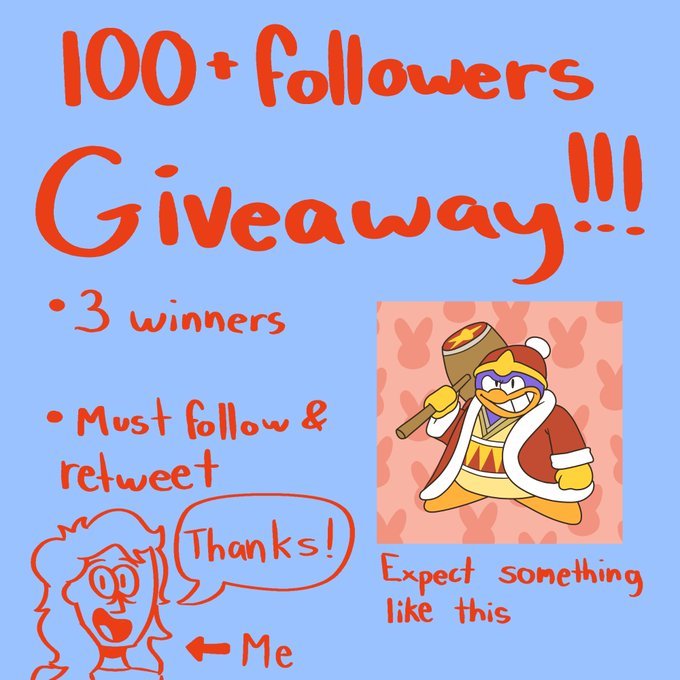 My 100+ followers art giveaway has commenced! There will be three winners. In order to enter, you have to be following me, and retweet this tweet! Winners will be randomly selected. Good luck!