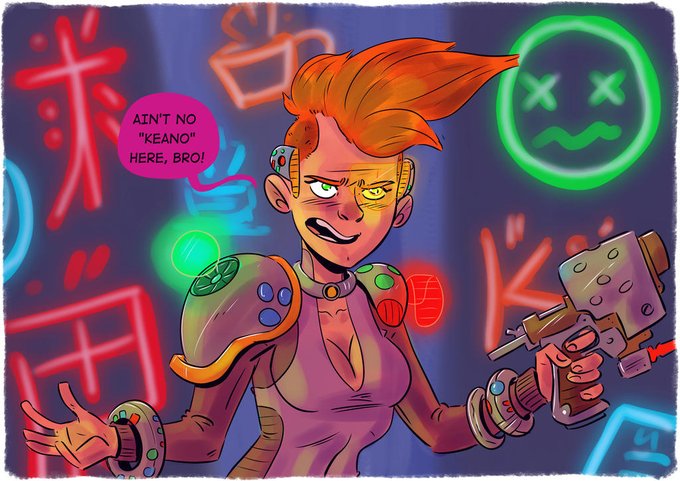 The #everbrawl topic this time around was #cyberpunk so heres what I came up with! Cant go too far wrong with a chunky gun and some glowing stuff right? Right!? #irishartist