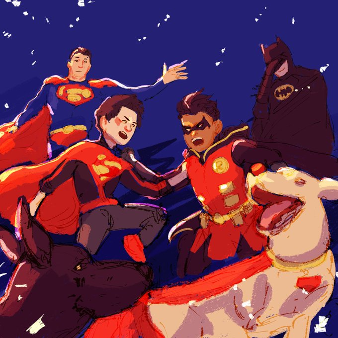 #supersons #superboy #robin #superman #superbat #krypto #jonkent #clarkkent #brucewayne #damianwayne #dccomics #batman #ArtistOnTwitter #sketch #digitalart #digitalpainting