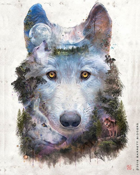 One of my more recent #animalart #surrealism pieces "Moon Pack" a tribute to #wolves