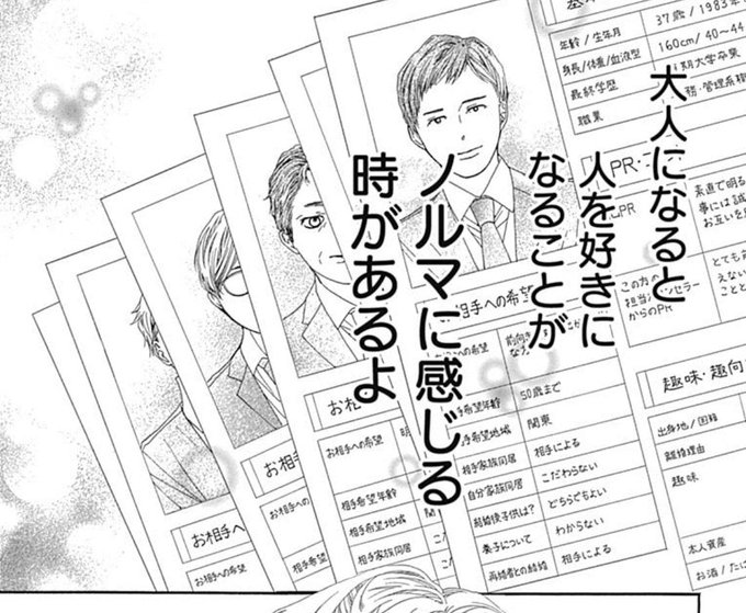 昨日読んでた漫画に出てきた1コマ ⠀ ほんと、大人になると人を好きになる(恋人をつくる、結婚する、家族をつくる)これらが課せられたノルマのように感じる時があるよ