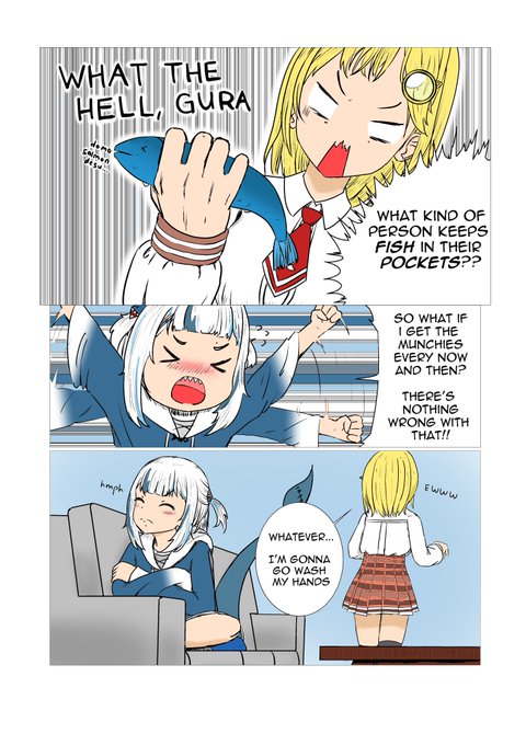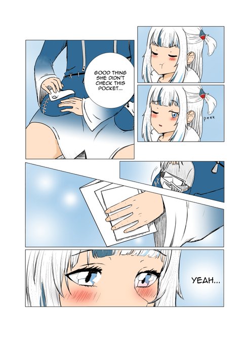 Wanted to color @sseldne's comic "What's Inside Gura's Pocket?" because it was too adorable and wholesome to pass up. Pages 1-4/8 #gawrt #ameliaRT #hololiveEnglish