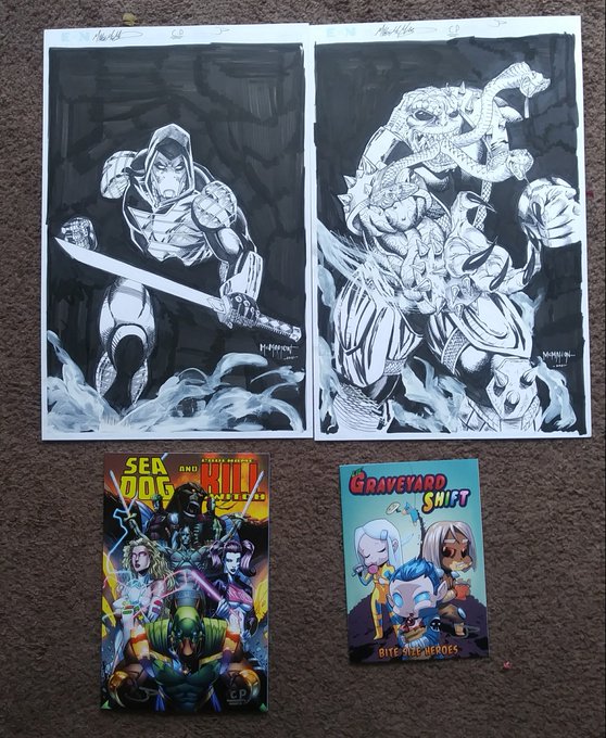 @tyler_c_world Got to meet a bunch of awesome CG creators over the weekend and got some great art and books from them. Oh, and @MikeMcMahon74 got the colors on a commison he did for me. All dope stuff. #doge #dogecoin #deathshead #comicsgate