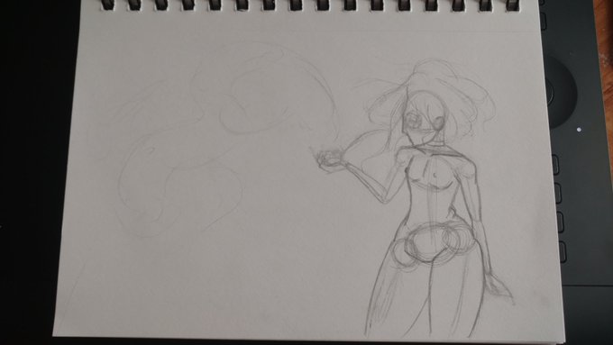@hunters_hex Just these two. I, obviously, never got a chance to finish the sketch but it was meant to be her blowing smoke while spirits danced in it.