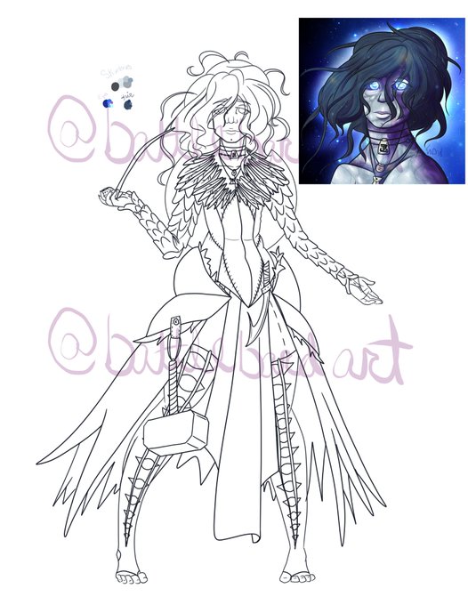 So. This is my grave domain aasimar cleric. And I’m struggling with a color palette for her. I know the feathers are hawk feathers and she has bear furs but after that...kind of stuck.