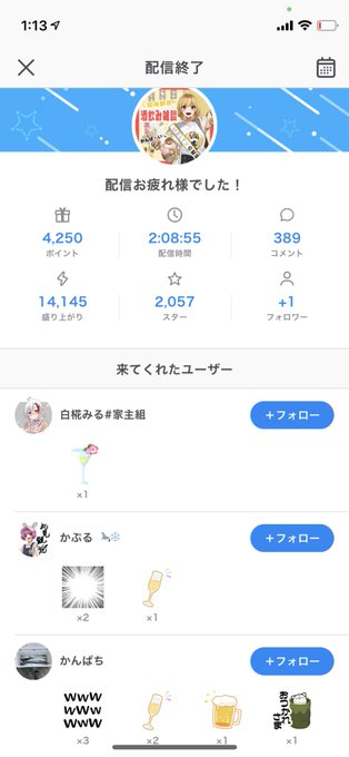 みんな乾杯してくれてあざ🥂∠(`・∀・´)/🍾