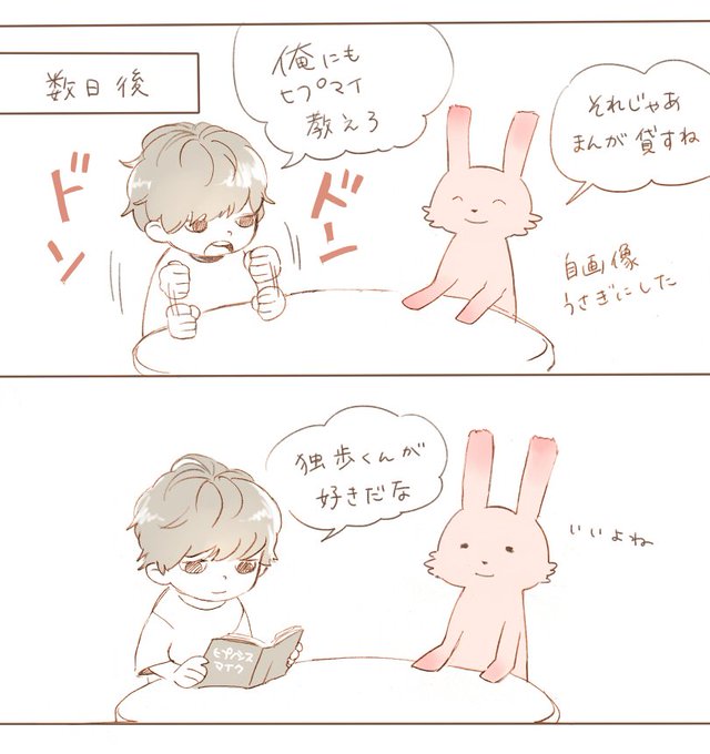 知り合いの男性にヒプマイを教えた話です 3枚目だけ自画像がうさぎになっています