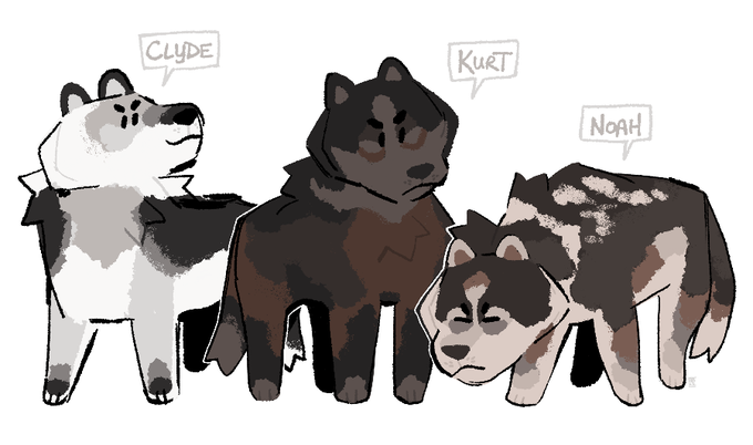 what if we were a pack of nonbinary werewolves who found eachother along the way 🐺🤌 kurt belongs to me, clyde and noah belong to @vigoroth @catchcombo